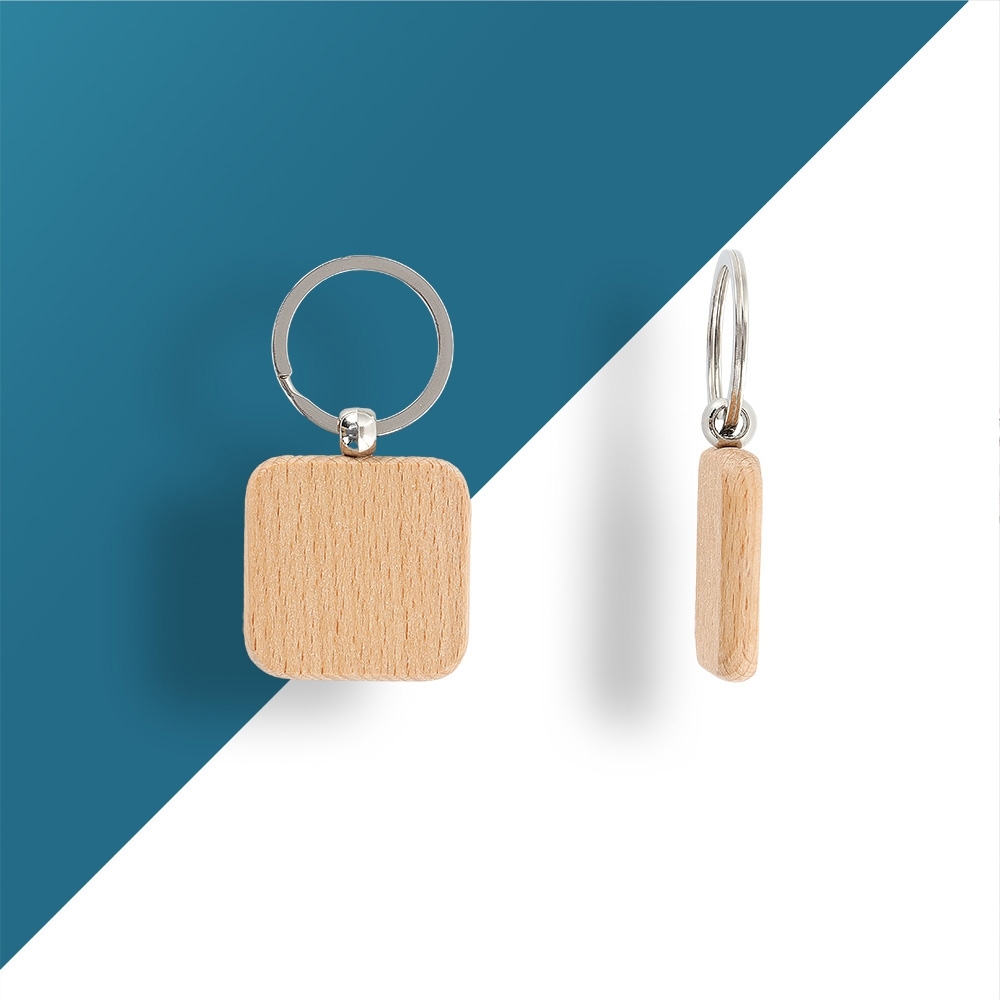 Um chaveiro em formato que traz um estilo minimalista e objetivo. Feito em madeira e com argola de metal, ele é uma opção prática e leve para reunir chaves, tornando-as mais reconhecíveis dentro de bolsas, mochilas ou bolsos, ou até mesmo usar como um item de decoração para zíperes de mochilas.
